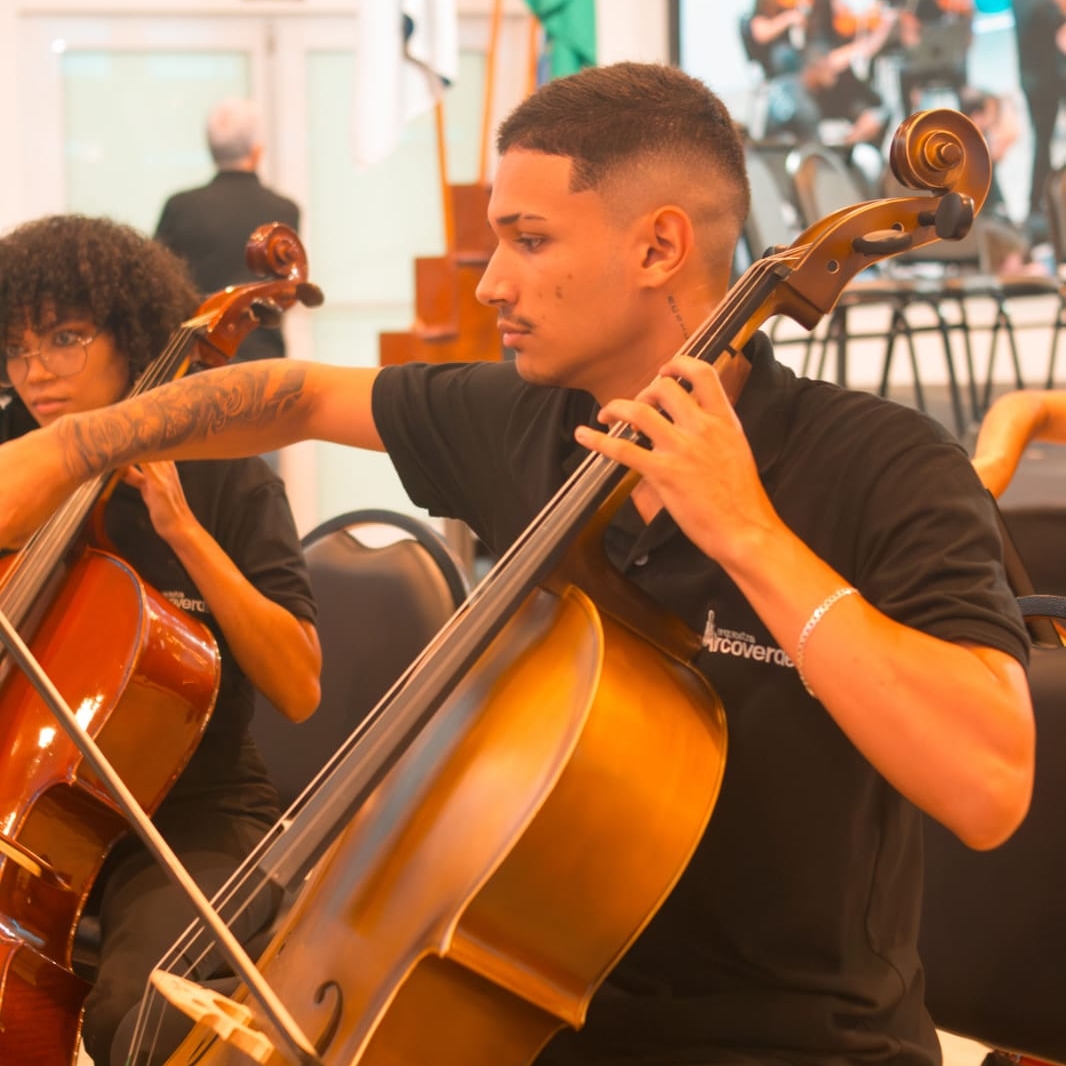 Uma das contrapartidas de aluno é integrar pelo menos um de nossos grupos. Por exemplo: Se você está aprendendo violino, deverá compor a Orquestra sinfônica ou a camerata de cordas.